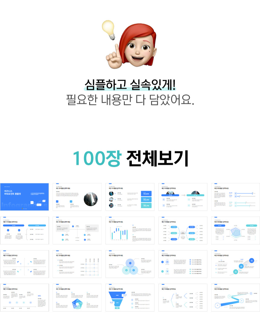 100장으로 핵심만 담은 깔끔한 비즈니스 PPT 세트