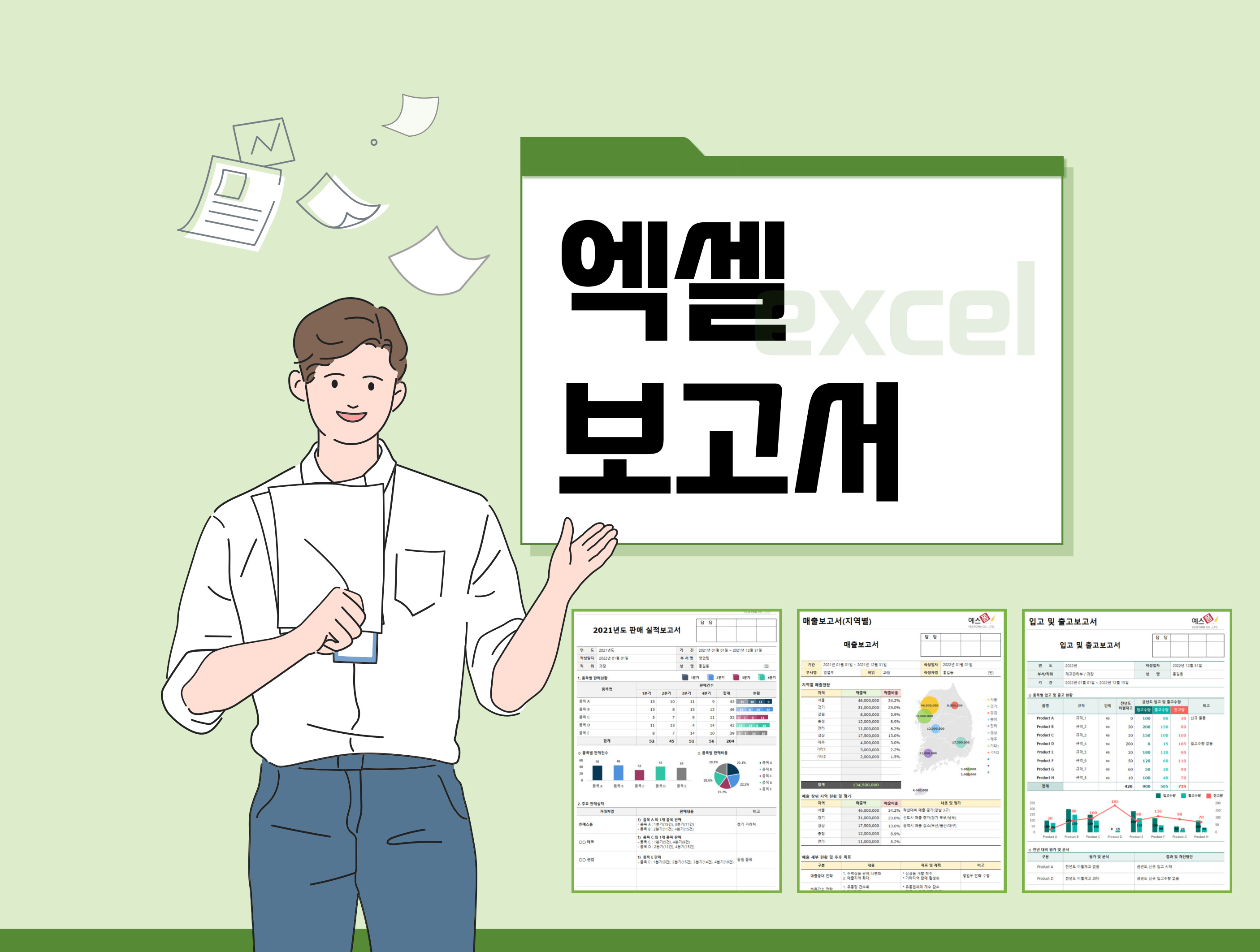 깔끔한 디자인의 엑셀 보고서 양식 (판매 실적, 매출 결산, 재고조사 등)