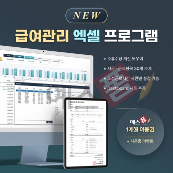 일용직 근무/급여관리 엑셀 Program(명세서 자동작성) - 예스폼 엑셀서식