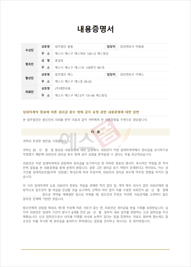 📑 예스폼 내용증명 양식 및 예시 모음