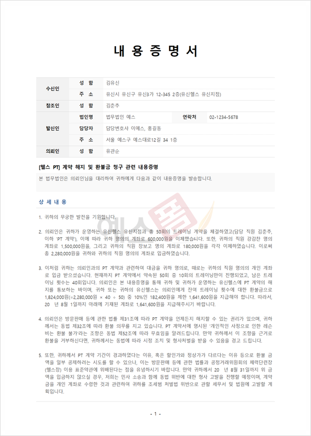 - 헬스 PT 계약해지
