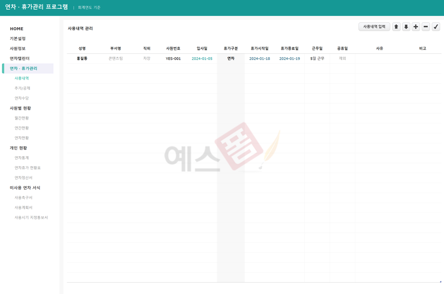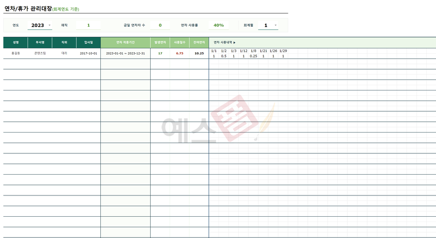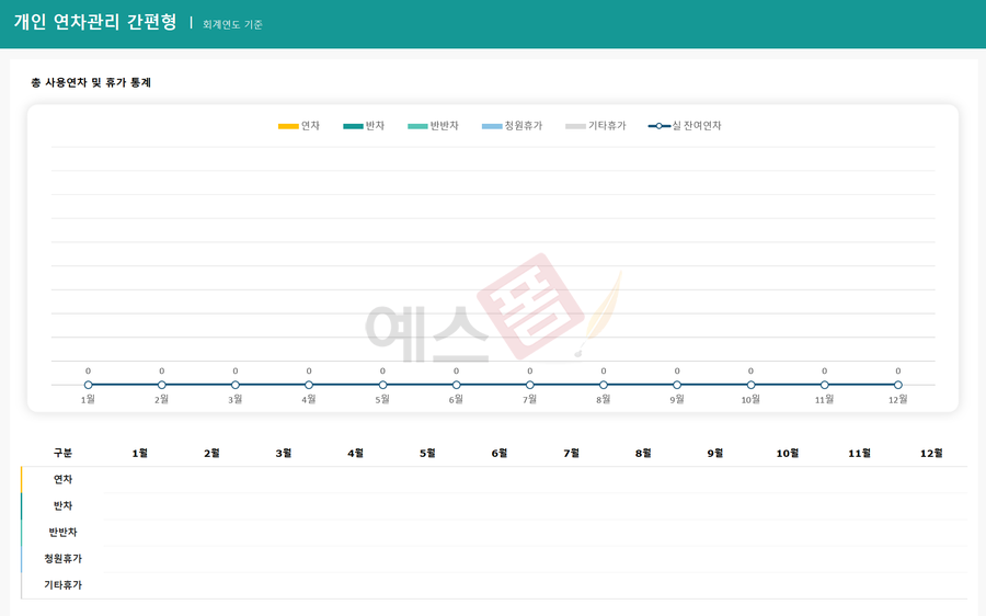 예스폼 개인 연차관리_간편형 엑셀 추천