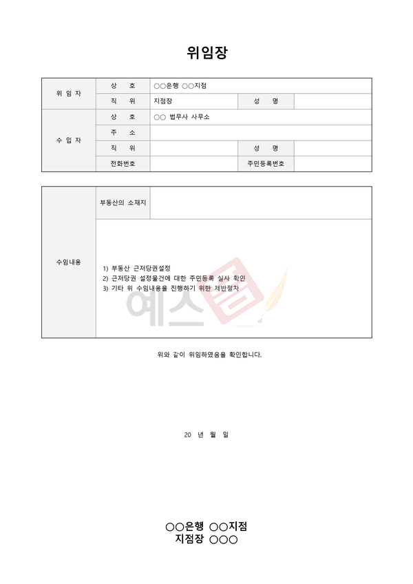 은행 거래 위임장