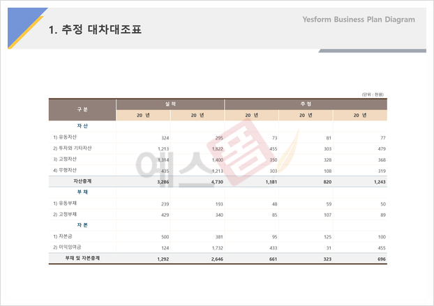 대차대조표 종류 및 작성 시 주의사항 알고, 기업 재무를 한눈에 파악해보세요! +예스폼 각종 재무상세표 사업계획서 대차대조표 양식