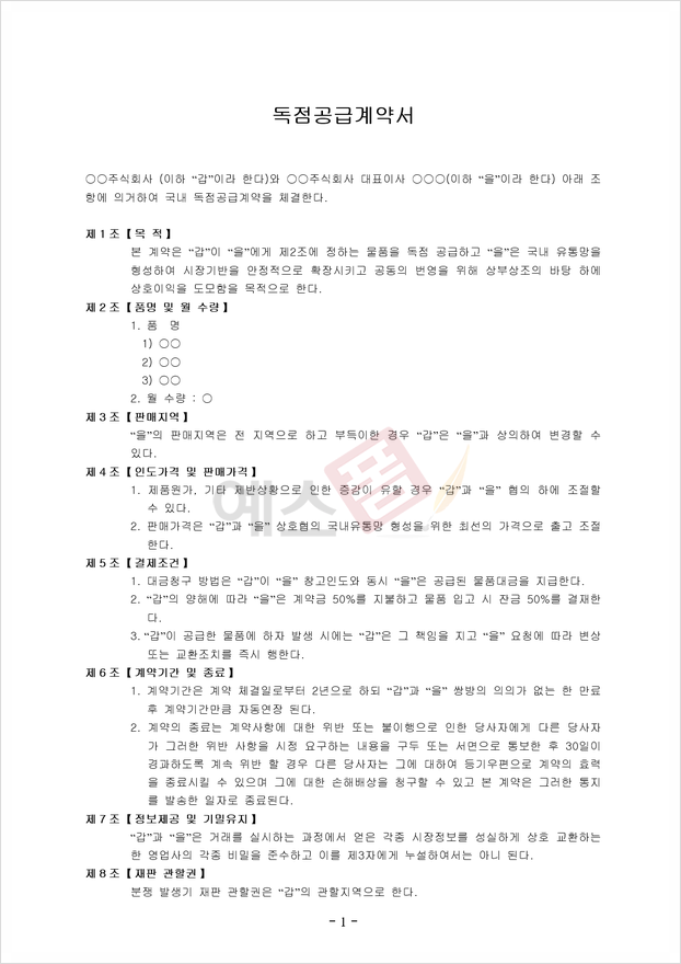 예스폼 [2023년] 독점 공급 계약서