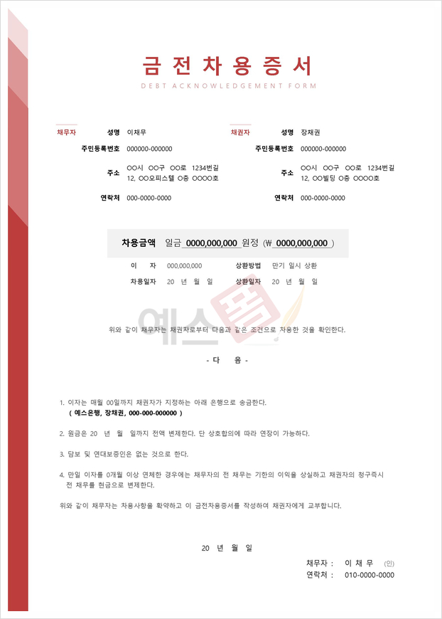 현금차용증서 | 금전차용증서 | 금전차용증 |