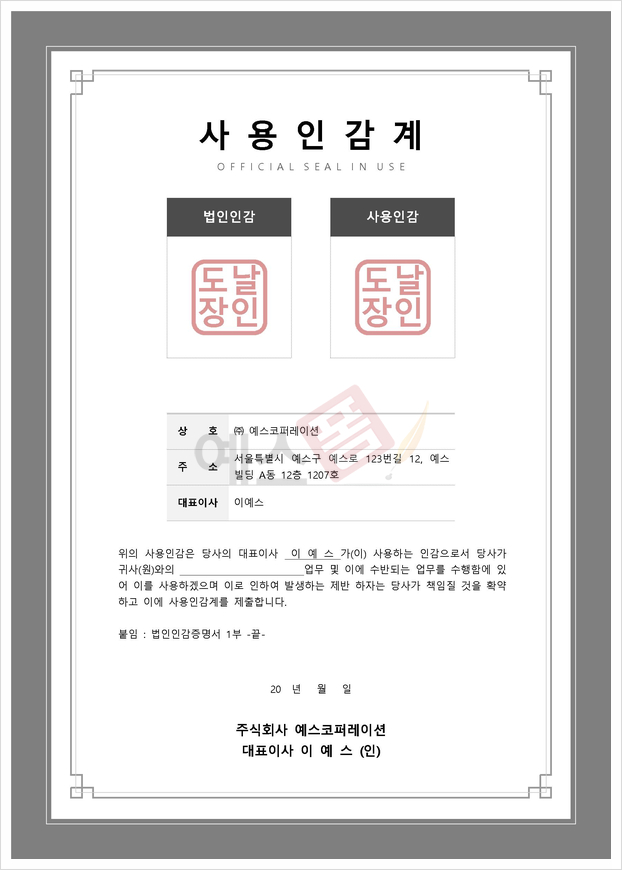 사용인감계 | 연간 핵심성과지표 KPI | 해촉증명서 |