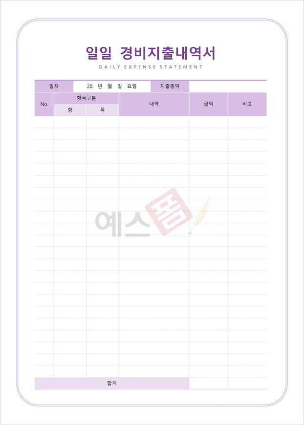 수입 및 지출내역서 | 법인카드 지출내역서 | 일일 경비지출내역서 |