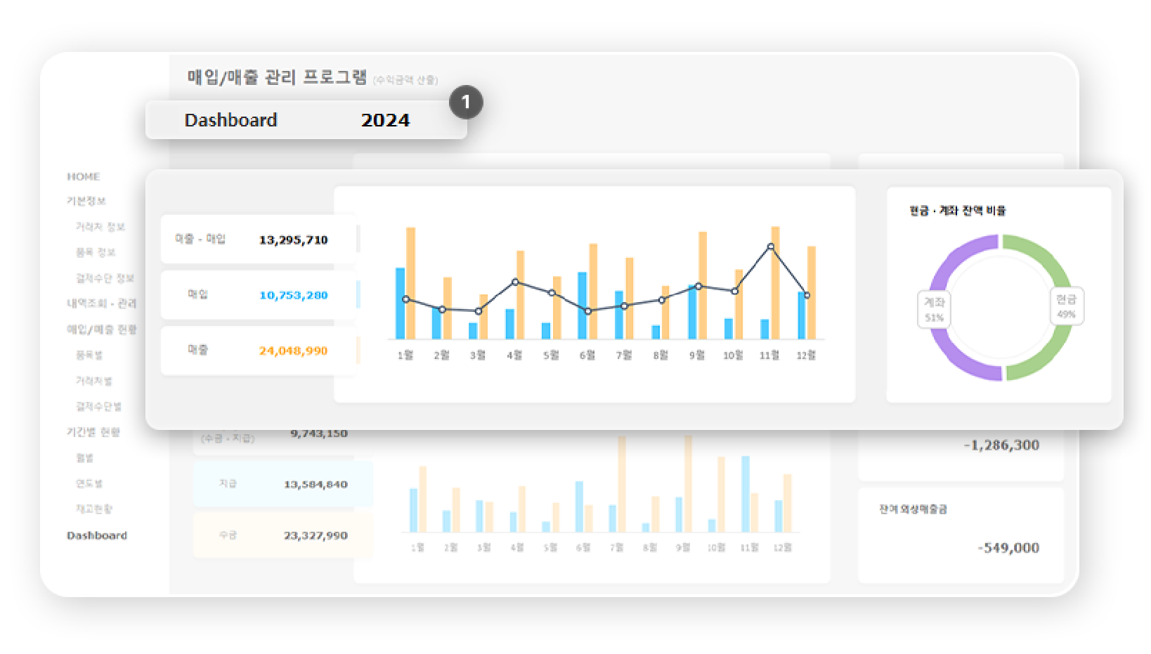 매입/매출(수익금액 산출) 관리 엑셀 프로그램(수금지급, 재고관리) - 예스폼 엑셀서식