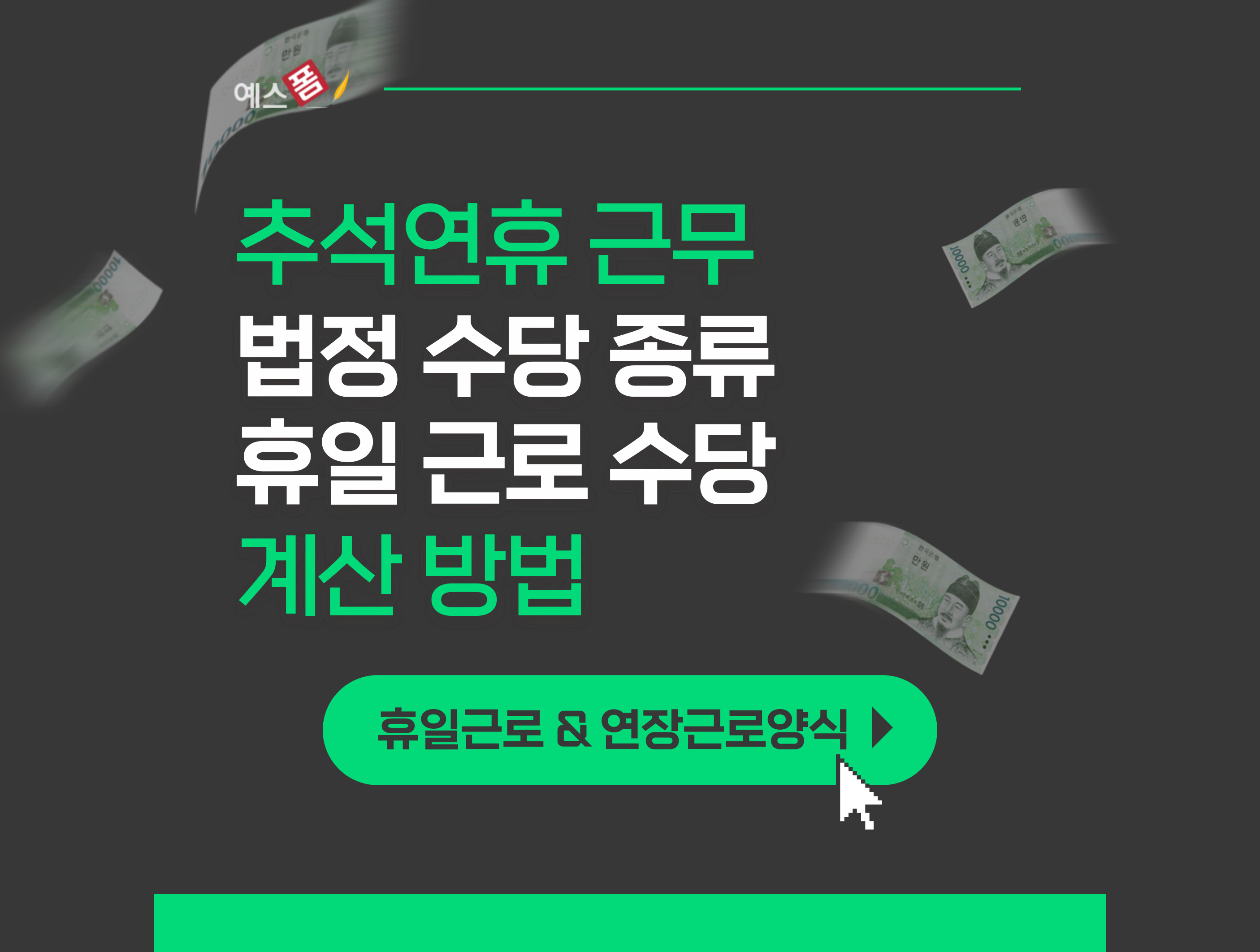 오늘은 예스폼에서 법정수당 종류 및 휴일근로 수당 계산 방법(+휴일근로&연장근로 관련 양식)에 대해서 알아보도록 하겠습니다.