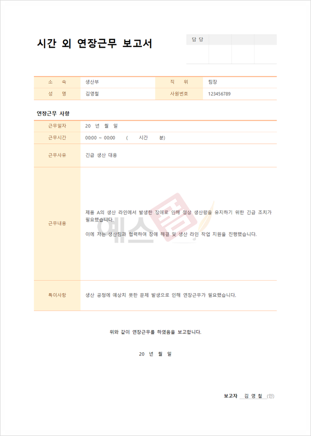 📝 시간 외 연장근무 보고서