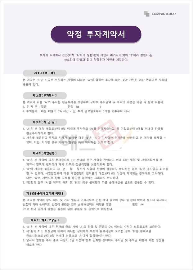 | 시간제 고용계약서 | 약정 투자계약서 | 임대 투자계약서 |