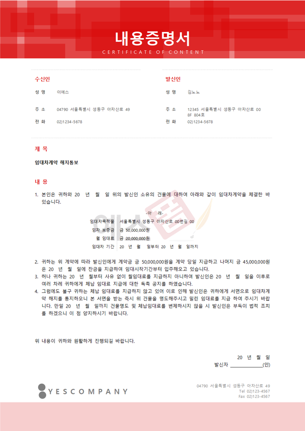 - 내용증명서 작성: 문서 내용은 명확하고 객관적인 사실 위주로 작성해야 하며, 감정적인 표현은 피하는 것이 좋습니다.