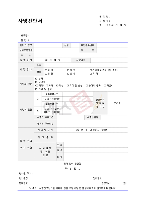 | 사망진단서 | 사망증명서 | 사망경위문 |