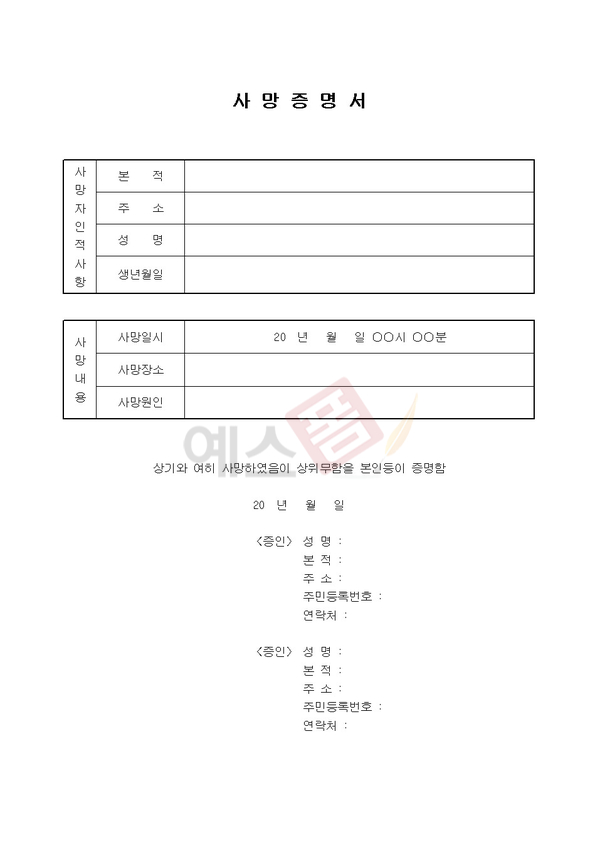 - 사망일시 : <예시> 오후 2시 30분(×) → 14시 30분(○), 밤 12시 30분(×) → 다음날 0시 30분(○)