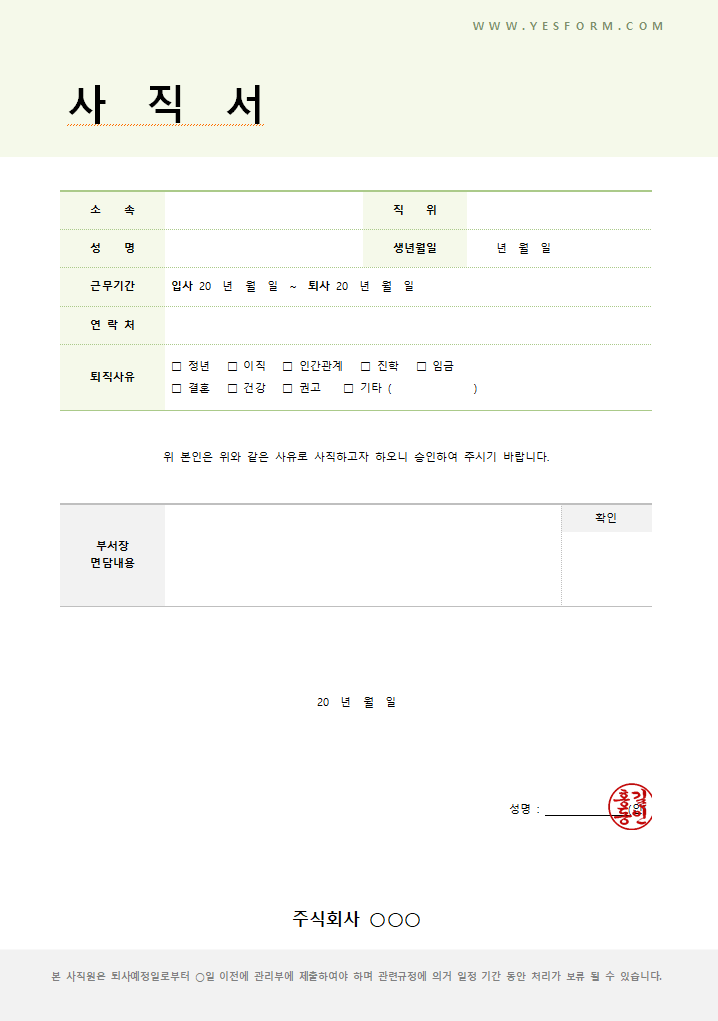 - 사직 희망일: 퇴사하고자 하는 날짜 명시