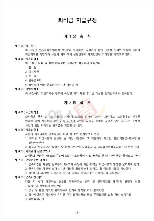 복무규정 | 복리후생 관리규정 | 퇴직금 지급규정 |