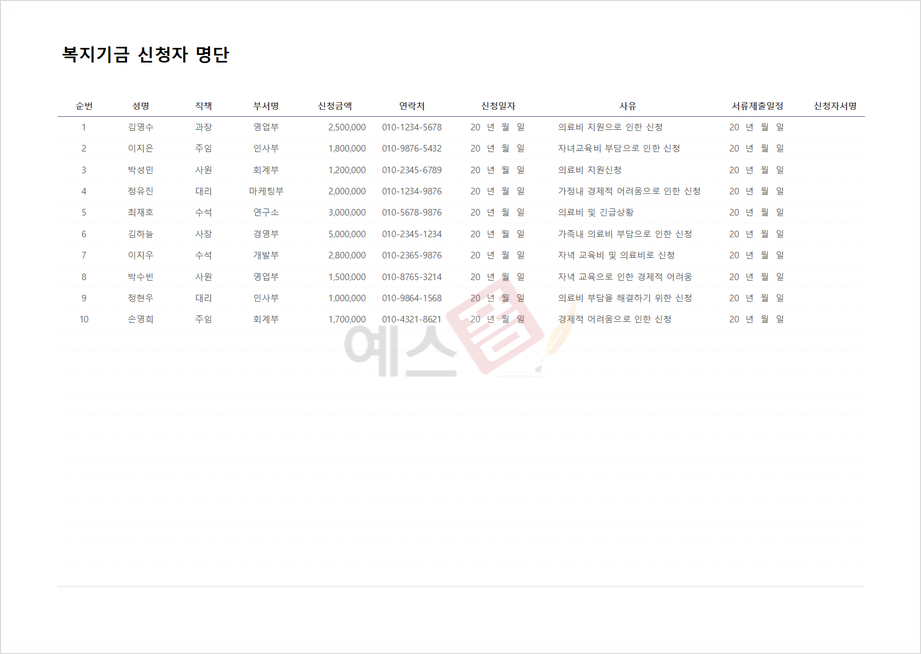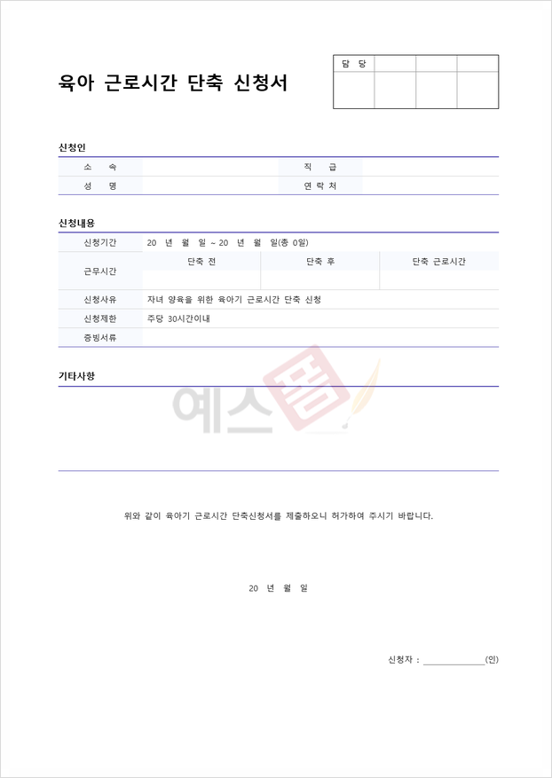 복지기금 신청서 | 기숙사 입주 신청서 | 육아 근로시간단축 신청서 |
