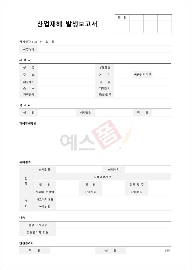 오늘 알아본 산업안전보건법감독대상, 산업안전보건법과태료 등의 관련 정보와 예스폼 산업안전보건법양식이 안전한 작업환경을 조성하는 데에 도움이 되셨길 바랍니다. 예스폼에서는 보다 다양한 산업안전보건법양식을 제공하고 있으니 관련 서식을 찾으신다면 참고해 보시기 바랍니다.