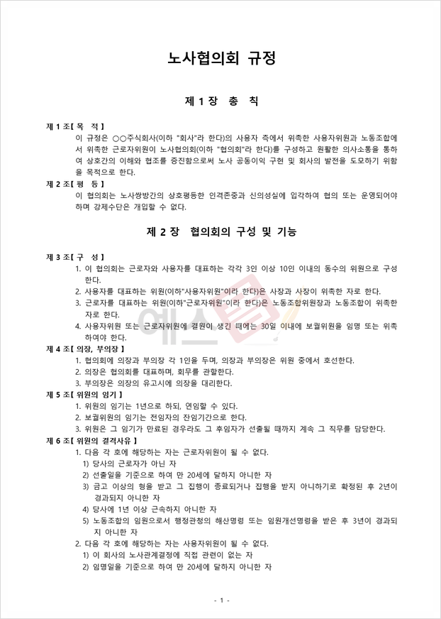 노사협의회 운영규정(상호 이해) | 노사협의회 규정(회사 운영목적) | 노사협의회 회의록(의결사항 및 협의사항) |