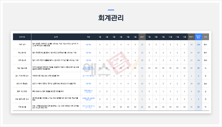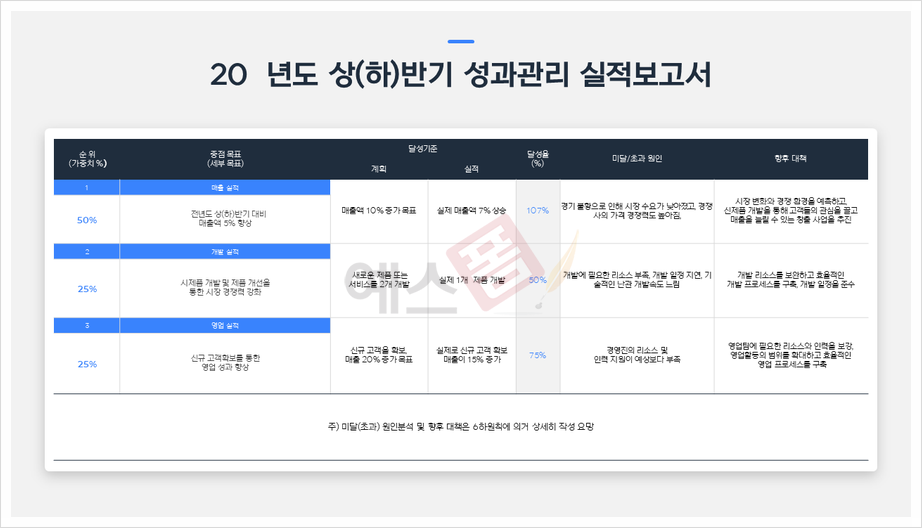 상반기 하반기 성과관리 실적보고서 예시(1) 확인하기