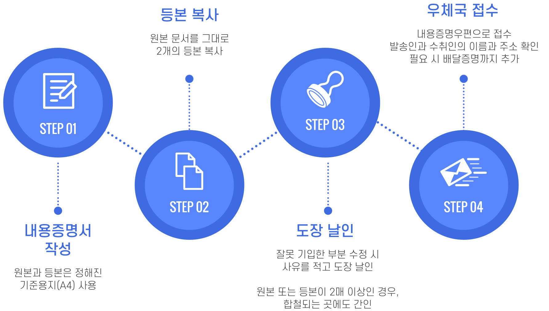 서류를 모두 작성한 후에는 총 3부를 준비해서 우체국을 방문합니다. 1통은 본인이 보관하고 나머지 2부 중 1부는 우체국에서 보관하고 1부는 상대방에게 발송합니다. 또한 무료 송부는 아니며 소정의 수수료가 필요합니다. 보내고 난 후 재증명이나 등본 열람 청구도 가능한데요 발송한 다음날부터 3년까지 보관을 하도록 되어있기 때문입니다. 이를 만약 분실하는 경우는 등본을 교부 청구해서 재발급받을 수 있습니다. 서면이 2장 이상인 경우에는 앞장과 뒷장에 계인을 해야 하며, 기입한 내용 중에서 정정 또는 첨가 사유가 있는 경우에는 다른 서류작성 방법과 동일하게 해당 난 외에 그 사유를 적고 날인을 하여야 합니다.
