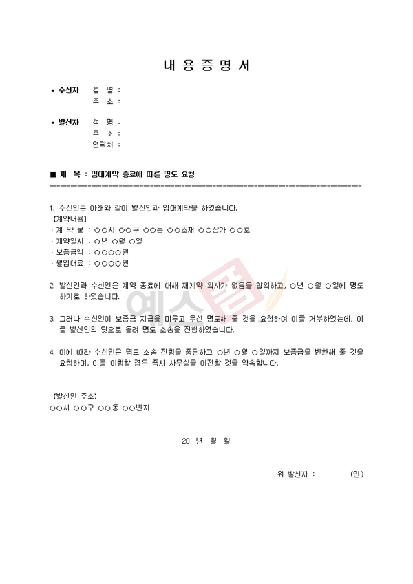 ⚖️ 주택 임대차 명도 통지 내용증명서