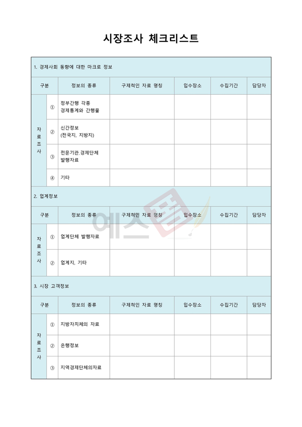 시장조사 보고서 | 시장조사 체크리스트 | 시장조사 엑셀서식 모음 |