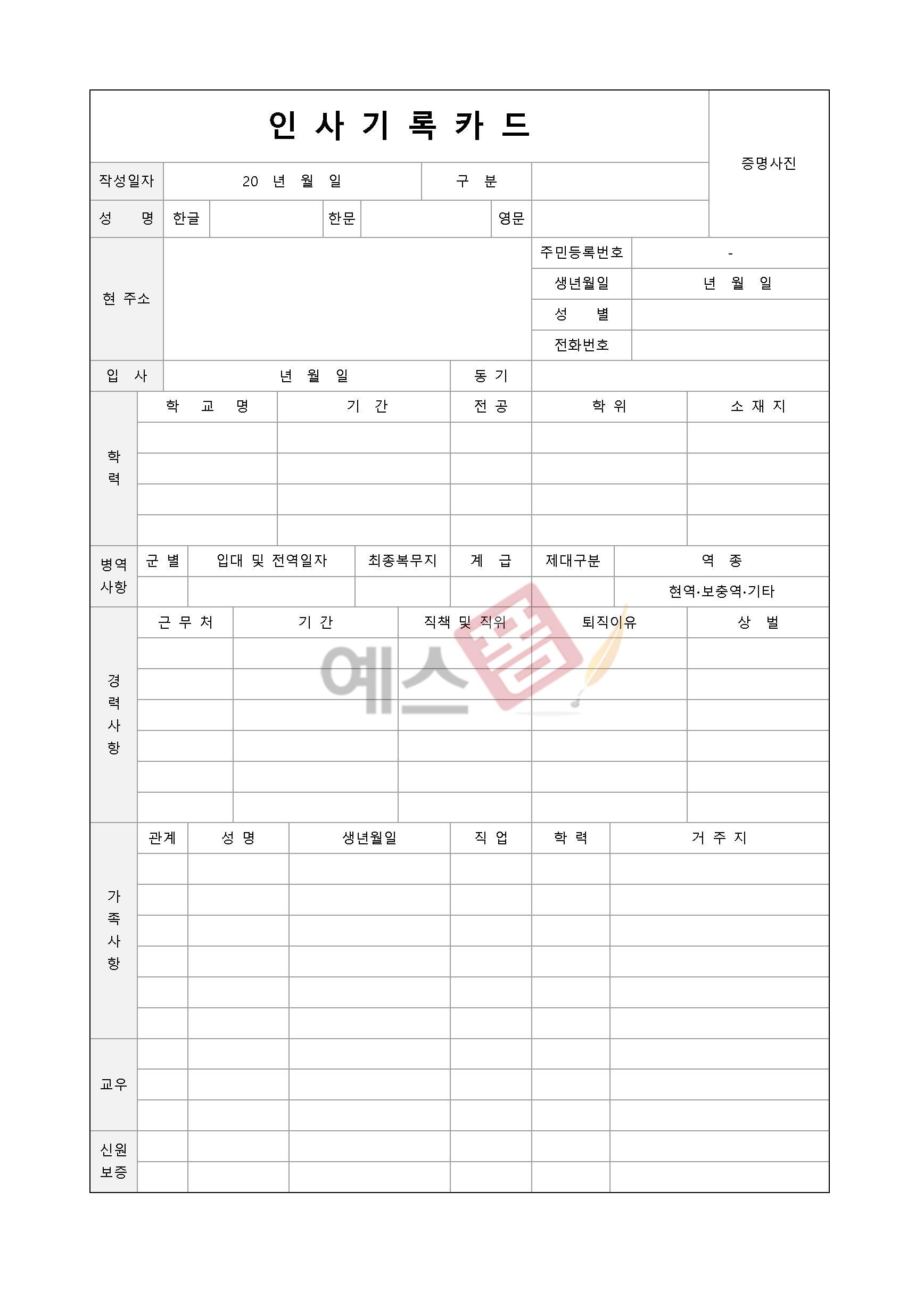 | 서약서 및 신원보증서 | 인사기록카드(신원보증) |