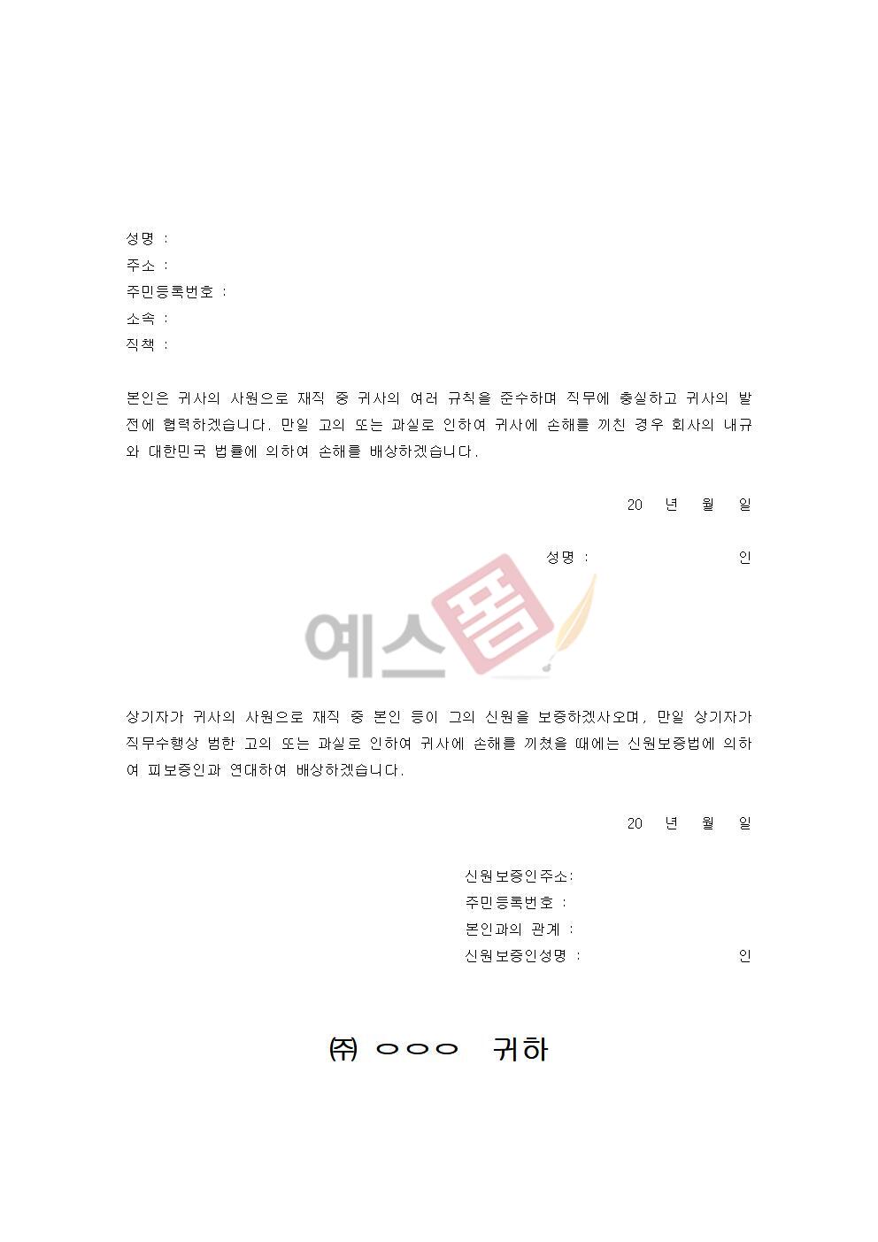 서약서 및 신원보증서(사원) |