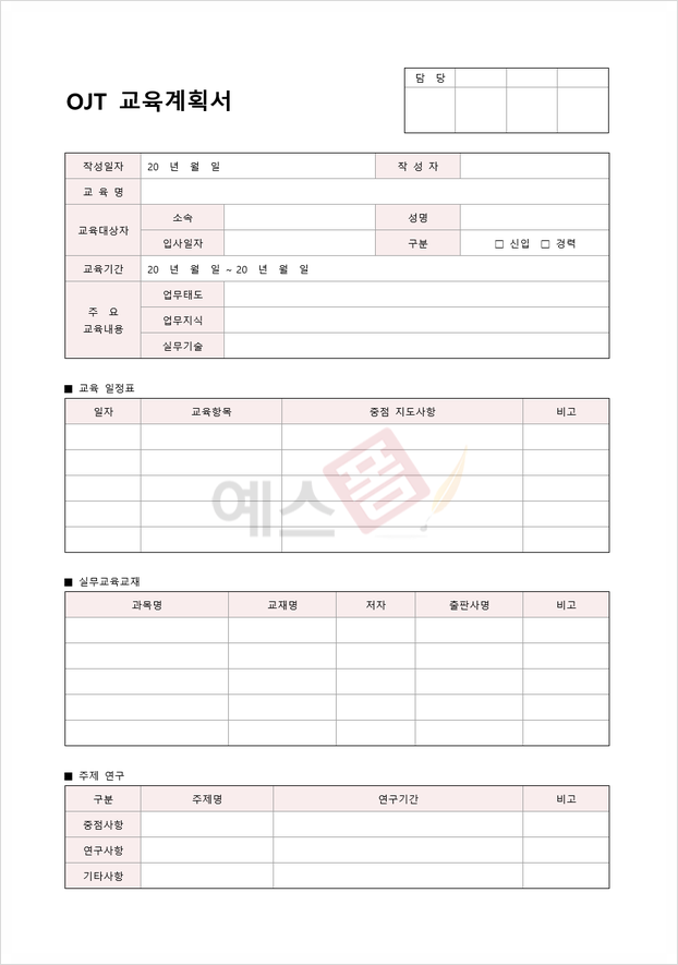 예스폼 OJT 교육계획서