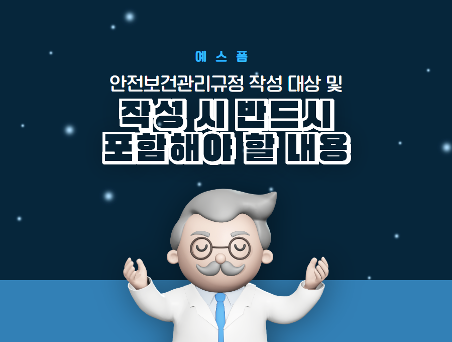 오늘은 예스폼에서 안전보건관리규정 작성 대상 및 작성 시 반드시 포함해야 할 내용에 대해서 알아보도록 하겠습니다.