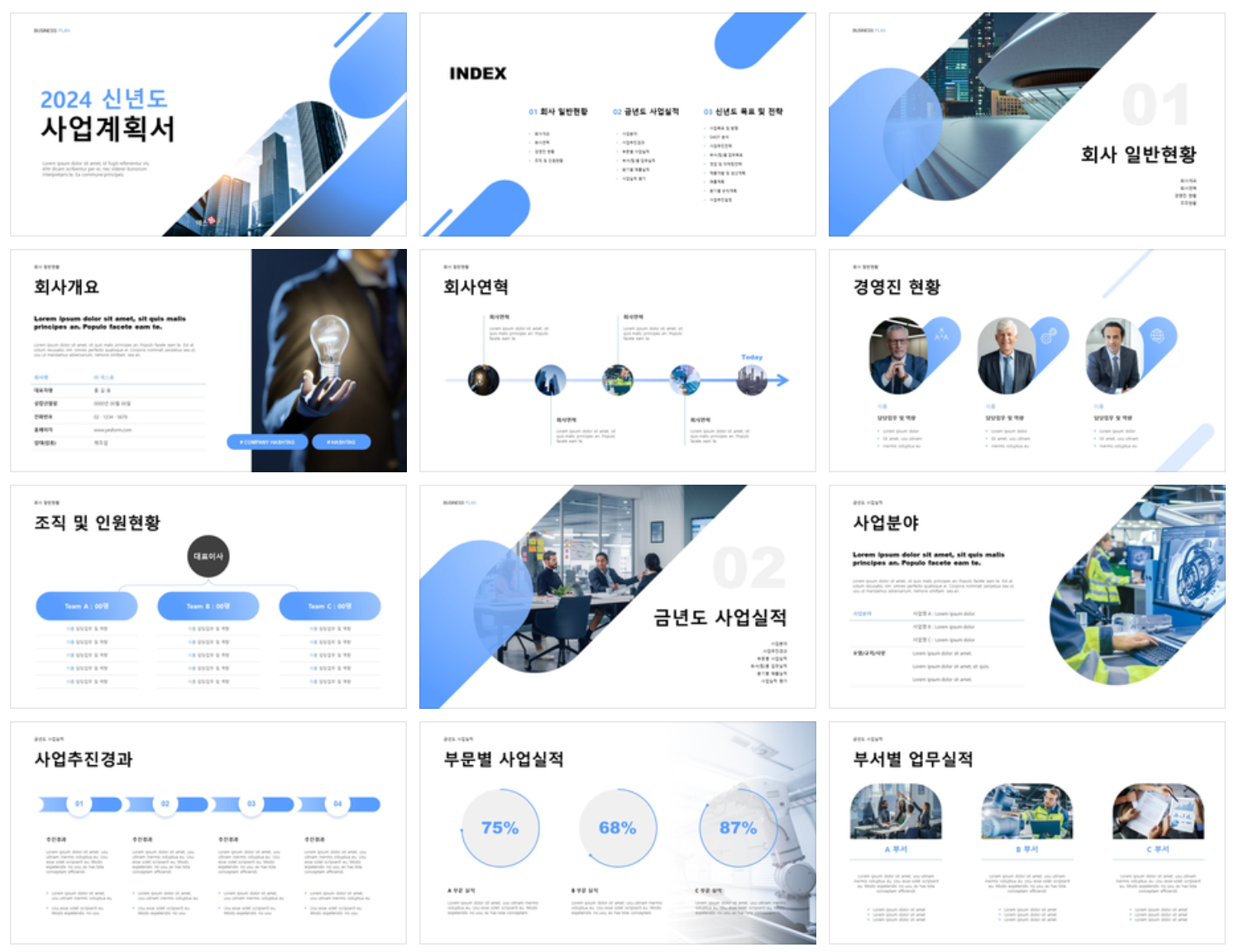 2024년 제조업 신년도 사업계획을 기술하고 목표를 수립할 수 있는 양식 자료입니다. 모던한 디자인으로 보다 더 깔끔하게 느껴질 수 있는 것이 특징이며, 각 목차별 모던한 컬러감을 활용하여 각기 다른 템플릿이 정리되어 있어 필요한 부분만 발췌하여 활용 가능합니다.