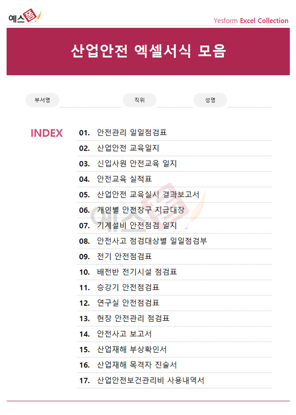 여기까지 예스폼에서 안전작업계획서 작성 대상과 내용 및 양식에 대해서 알아보았습니다.