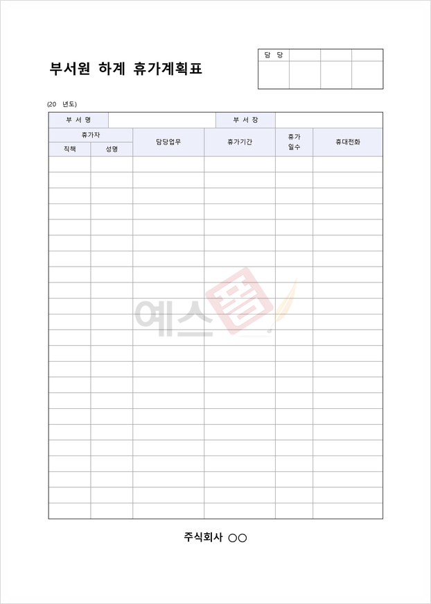 연차휴가 사용계획서 | 연차휴가 사용계획표 (분기) | 부서원 하계 휴가계획표 |
