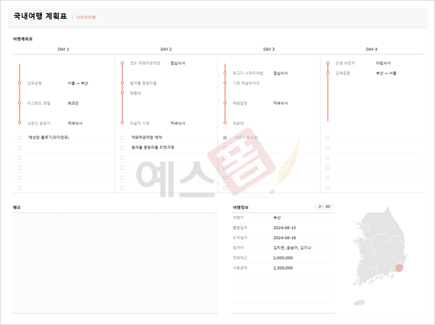 🚘 예스폼 국내여행 계획표(다이어리)
