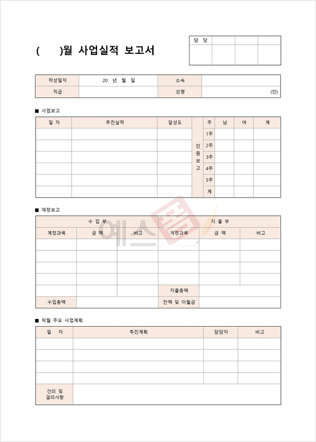 월간 사업실적 보고서 |