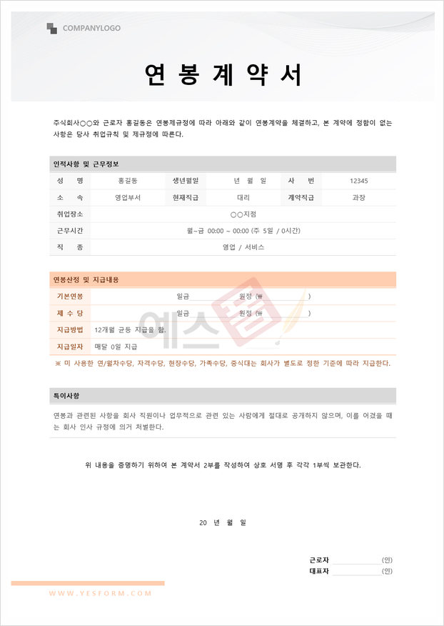 ▼▼예스폼 계약직 근로자 연봉계약서 바로가기▼▼