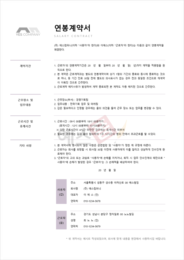 여기까지 예스폼에서 연봉 계약서 작성방법 및 양식에 대해서 알아보았습니다.