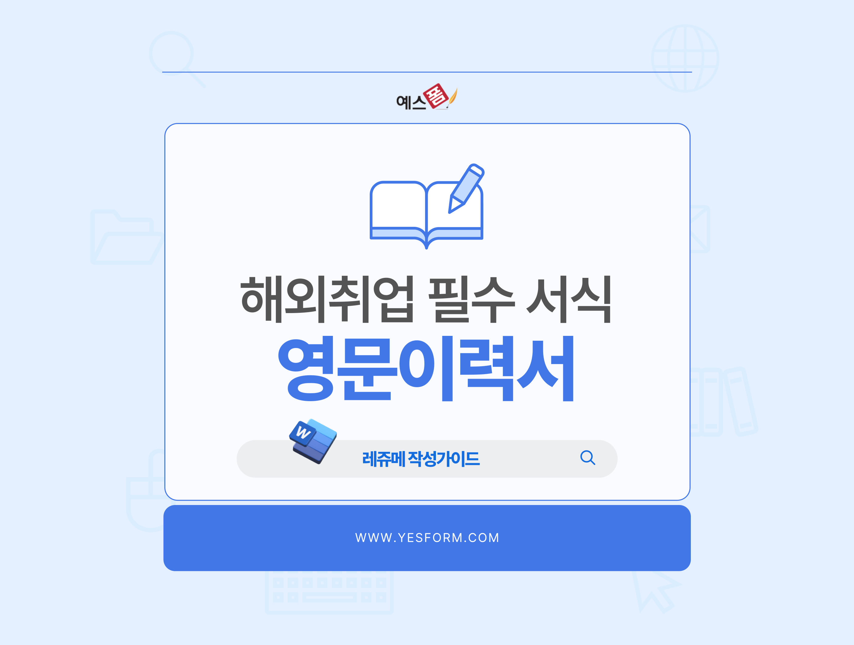 영어로 CV(Curriculum Vitae)라고 부르며, 라틴어로 '내 삶의 여정'이라는 뜻을 가지고 있는 단어는 무엇일까요? 바로 영문 이력서(Resume)입니다. 영문 이력서는 해외 기업에 입사 지원하거나 해외 취업을 목표로 하시는 분들에게 매우 중요한 문서인데요. 쉽게 표현하자면, 이력서와 경력기술서를 합한 문서입니다.