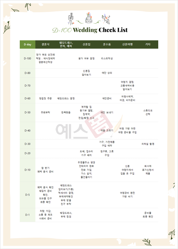 웨딩 체크리스트(D-100)