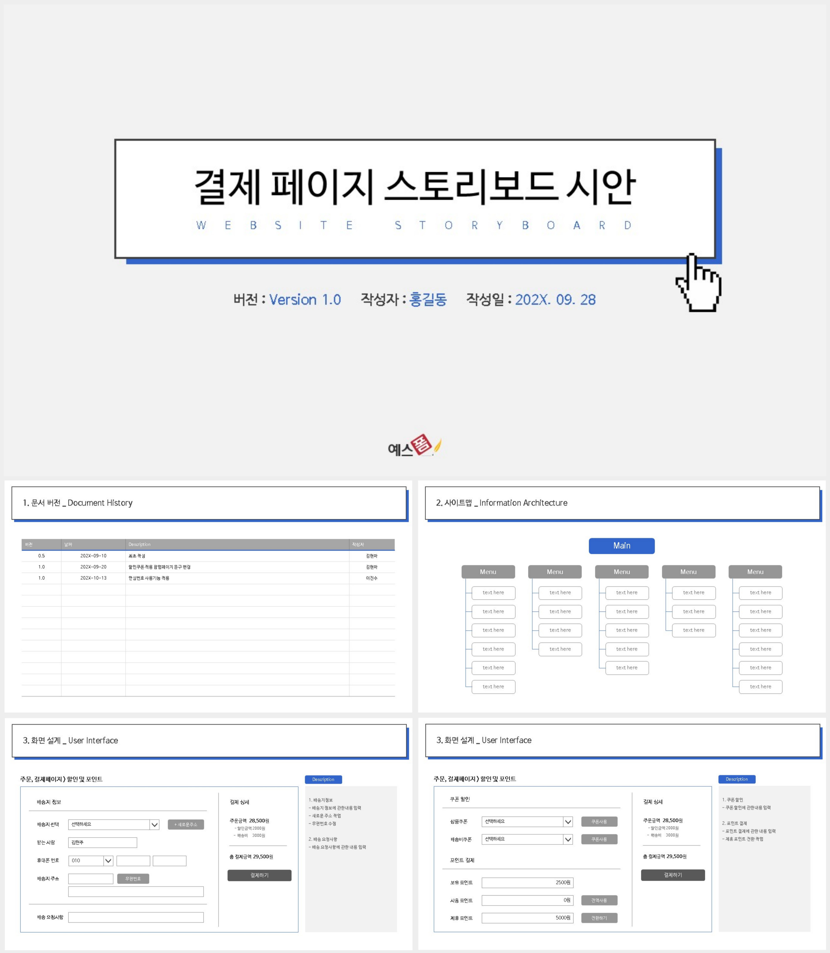 결제페이지 웹 스토리보드 시안 | 웹사이트 디자인 스토리보드 |