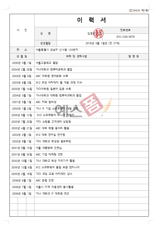 📌 이력서(파랑) 양식