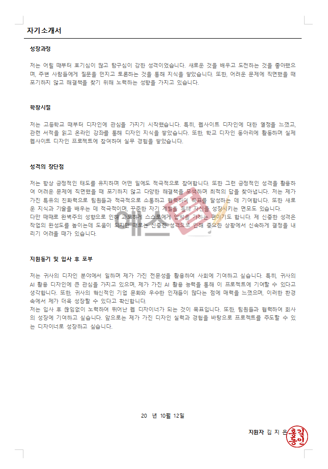 5️⃣ 맞춤형 자기소개 및 지원동기 작성