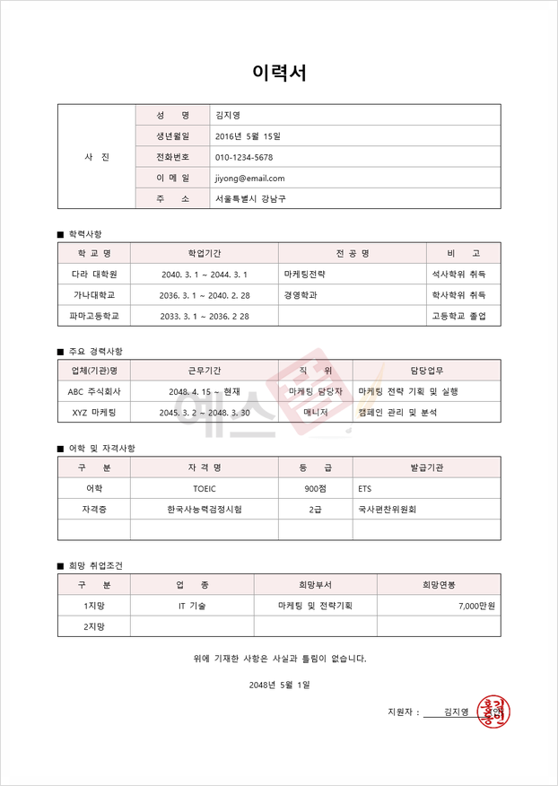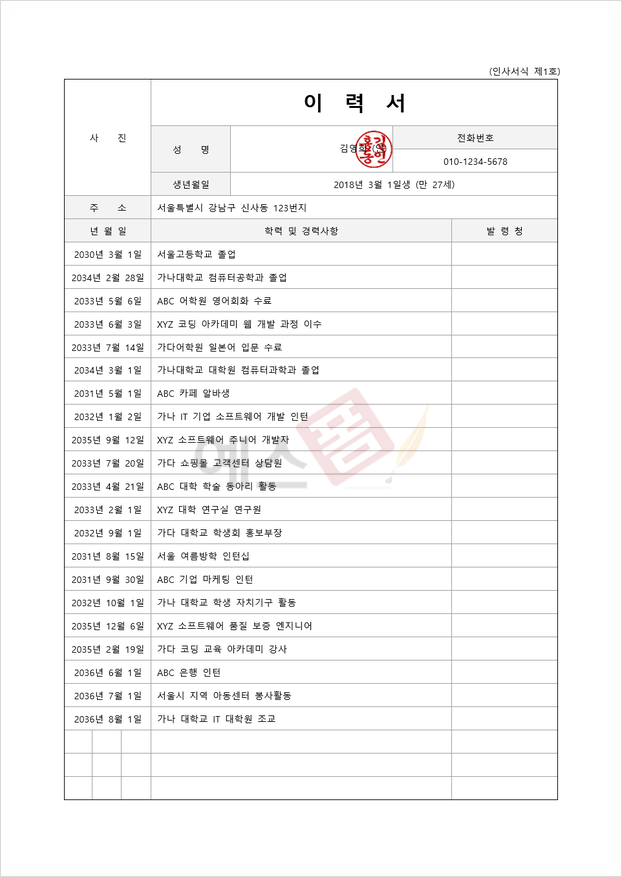 신입사원용 이력서