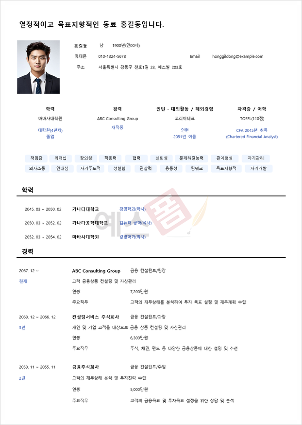 전문직용 이력서