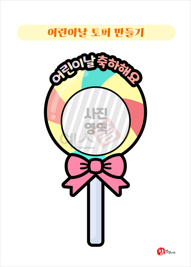 | 어린이날 무지개 꽃 토퍼 | 어린이날 토퍼 (막대사탕-합성형) | 어린이날 토퍼 도안 (꽃받침 주인공) |
