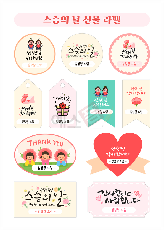 | 스승의 날 선물라벨 도안 | 어린이날 선물라벨 도안 |