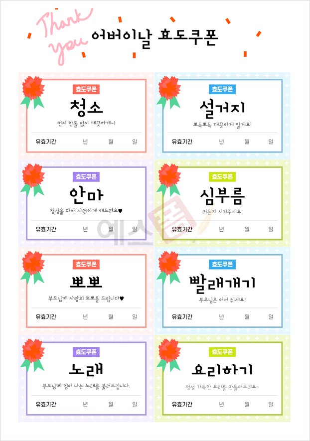 어버이날, 어린이날 사용할 수 있는 소원쿠폰 도안도 있으니