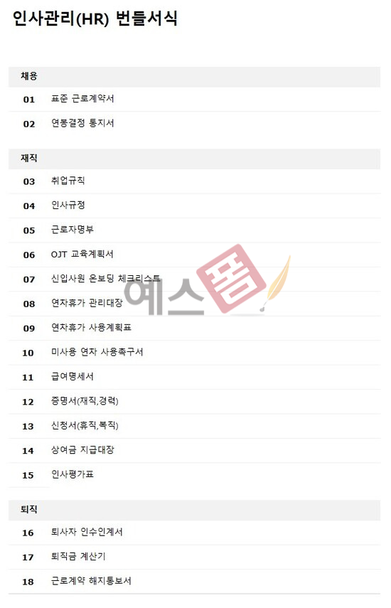 1. 인사관리 실무서식 번들팩 목차